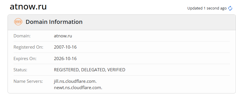 Проверка показала, что сайт atnow ru был зарегистрирован в 2007 году.