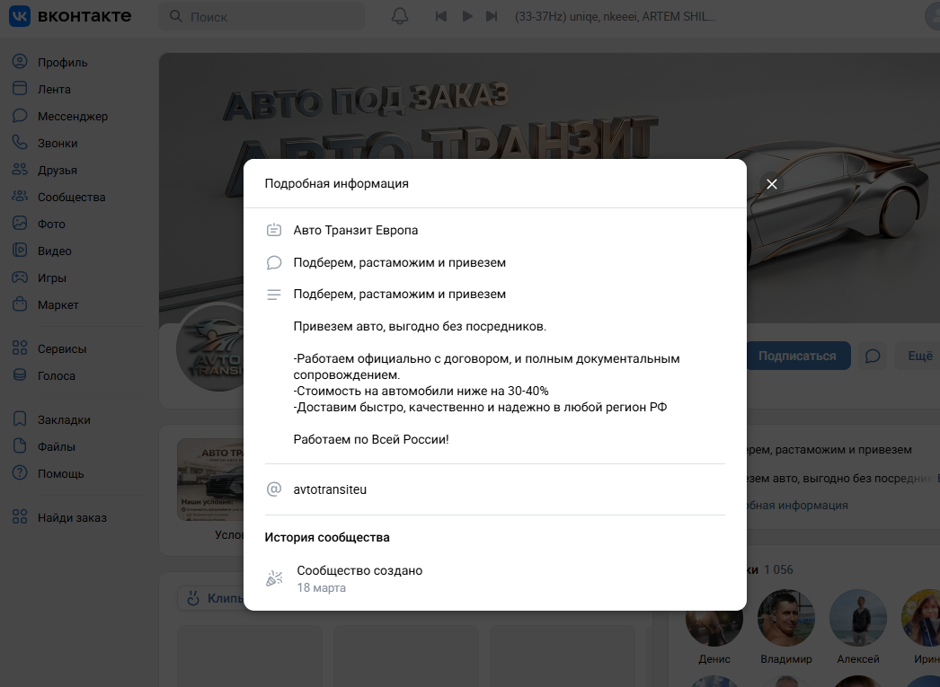 Оставшийся в интернете контакт c большой вероятностью — сообщество VK с тем же названием, где в марте и апреле 2026 года публиковались объявления о продаже автомобилей с годом выпуска, пробегом и контактами менеджеров. Количество подписчиков — более 1,1 тыс. человек.