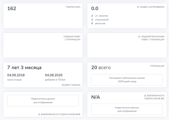 - владельцы не обновляют статистику телеграм-канала;