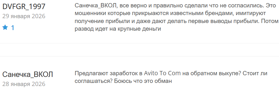На профильных ресурсах есть несколько отзывов об https Avito to com, все они негативные. Пользователи подтверждают, что это — развод на деньги под видом заработка.