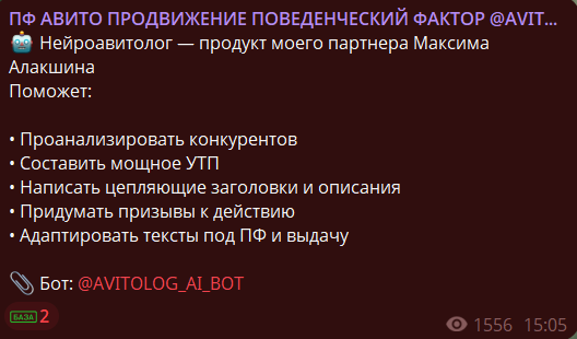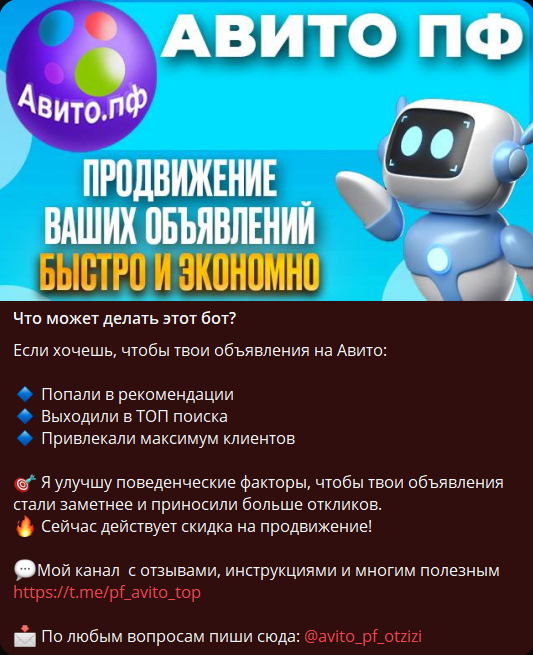 Обзор телеграм бота Авито.пф: отзывы юзеров, функции и особенности, стоит ли накручивать просмотры на Avito объявления