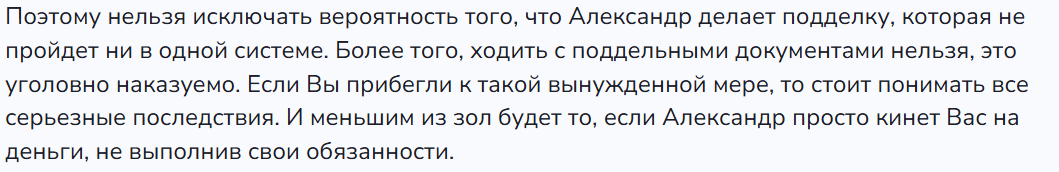 - Нет никаких гарантий, что, получив деньги, Александр и правда отправит клиенту документы;