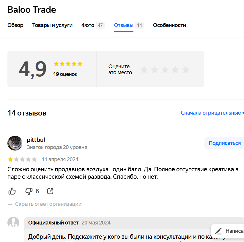 На Яндекс Картах офис компании получил 19 оценкой с итоговым баллом в 4.9 из 5. С комментарием 14 из них, почти во всех школу хвалят за качество и доступность. Недовольным остался только один комментатор, которому ответили официальные представители сервиса.