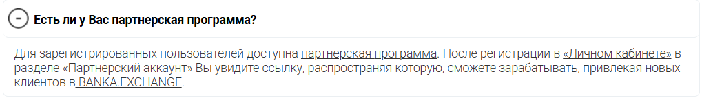 Из интересного в обменнике Banka Exchange отметим наличие партнерской программы, однако тут тоже не обошлось без проблем. За рефералов хоть и обещают бонусы, однако их размер не сообщаются, точные условия для получения наград тоже неизвестны.