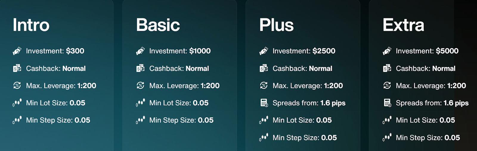 Кредитное плечо для всех сделок неизменно и держится на уровне 1:200.