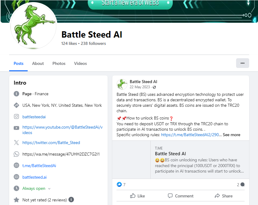 Официальный сайт battle steed ai был зарегистрирован в 2023 году на территории США, однако на данный момент он заблокирован по неизвестным причинам. По этой причине они изменили домен на battlesteed cc