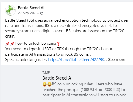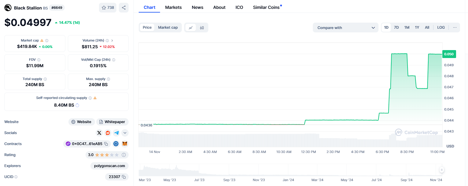 Помимо этого они используют дизайн официального крипто проекта Black Stallion, который действительно имеет свой токен BS, зарегистрированный на coinmarketcap. Однако по информации в сети, они не имеют никакой связи с ними.