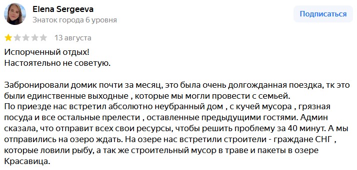 Некоторым клиентам отдых в Белой Даче не понравился, они заявляют о некачественном сервисе.