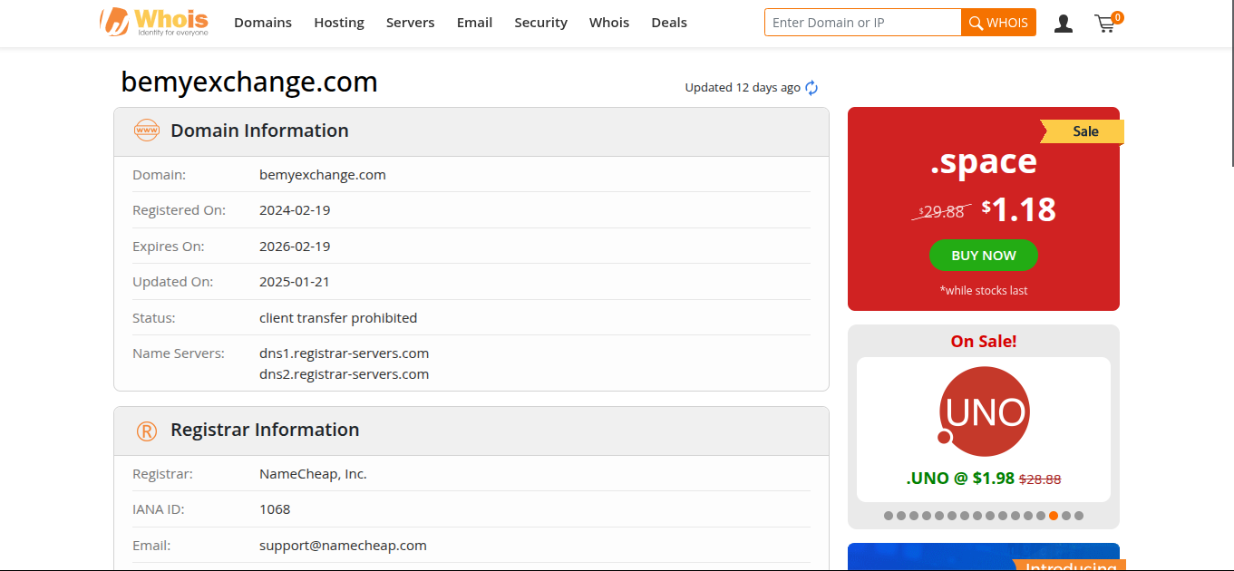 - Отсутствие контактов для связи, кроме почты — hello bemyexchange com. Социальных сетей нет.