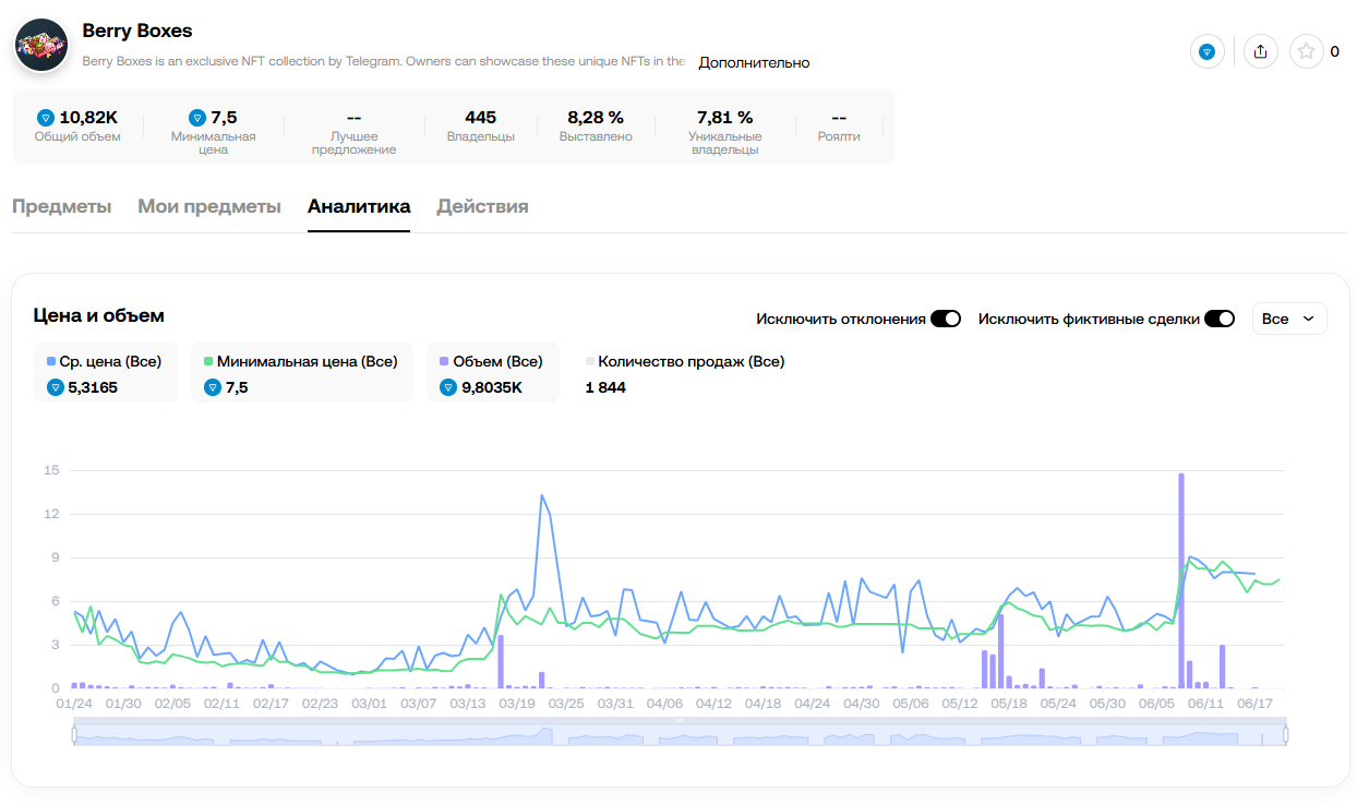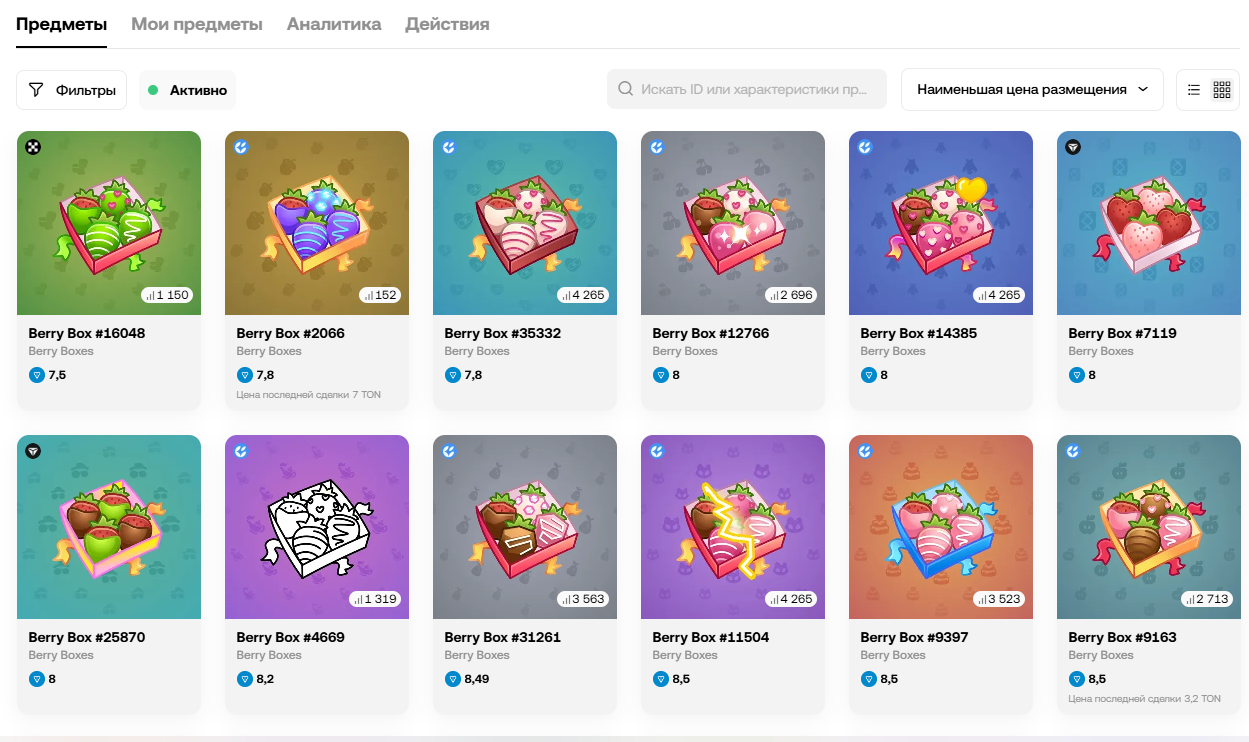 NFT Berry Box в Telegram: сколько стоит сейчас, динамика цены, анализ рынка Берри Бокс в Телеграм