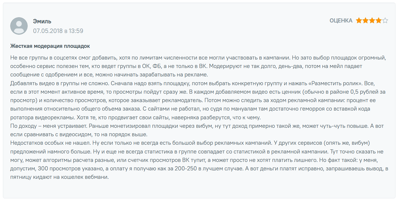 Но встречаются и негативные отзывы. Чаще всего в них пользователи жалуются на строгую модерацию: блоги могут не пройти проверку. Еще одна претензия — низкий заработок для каналов с небольшими показателями.