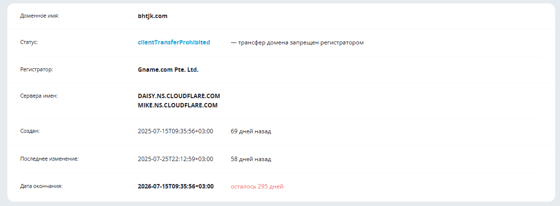 Домен зарегистрировали в июле 2025 года, а на момент написания материала он существует всего 69 дней.