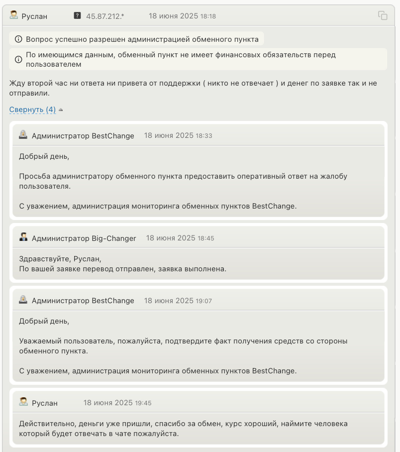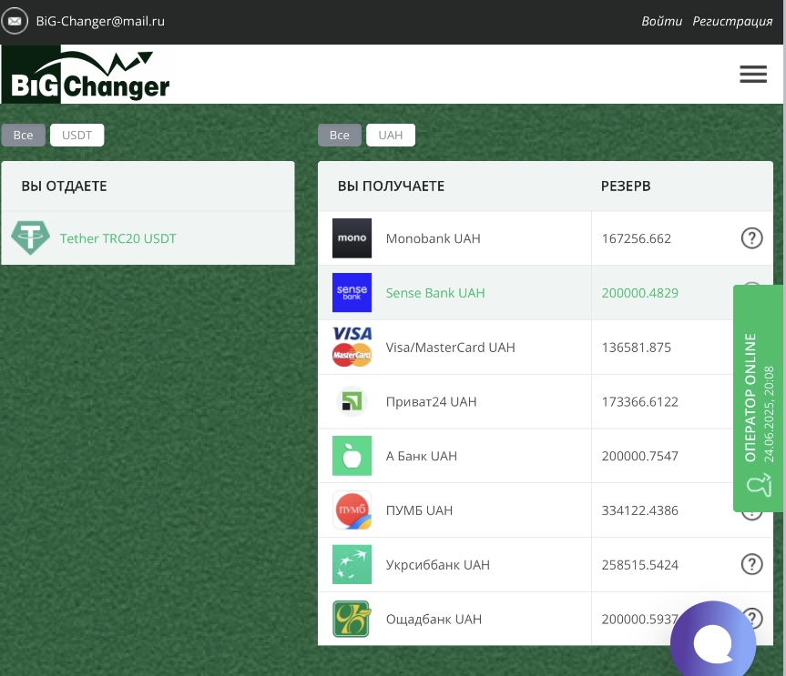 Big Changer — обменный онлайн-пункт, который позволяет продавать и покупать криптовалюту. Работает с 2018 г.