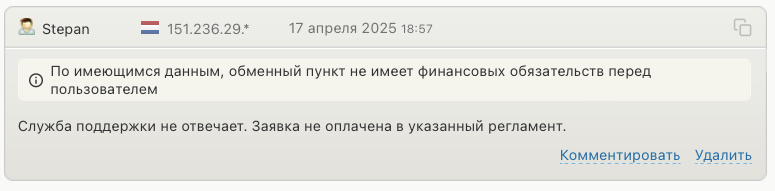 Если вы покупали или продавали криптовалюту через данный обменный пункт, поделитесь своим мнением о его работе в комментариях под данным обзором.