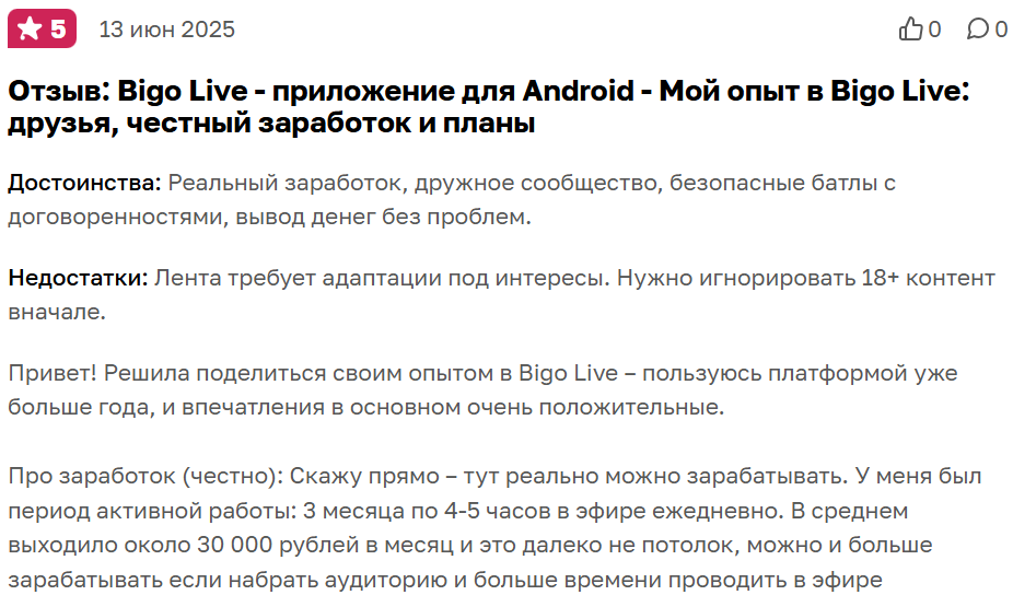 В интернете много отзывов о Bigo Live, обычно они положительные, пользователям нравится платформа, они утверждают, что зарабатывать реально получается.