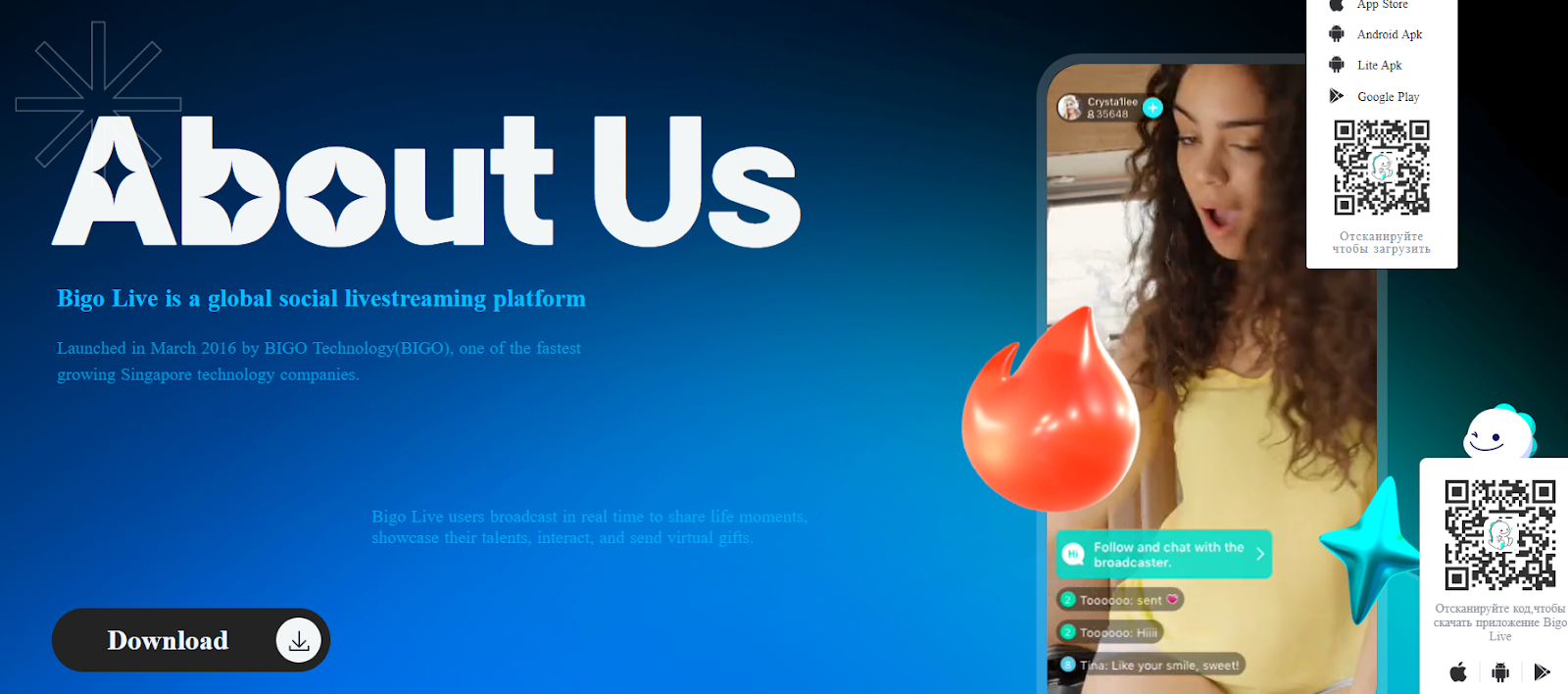 Официальный сайт проекта находится на домене Bigo tv, где можно зарегистрироваться и начать стримить. Также у платформы есть мобильное приложение.