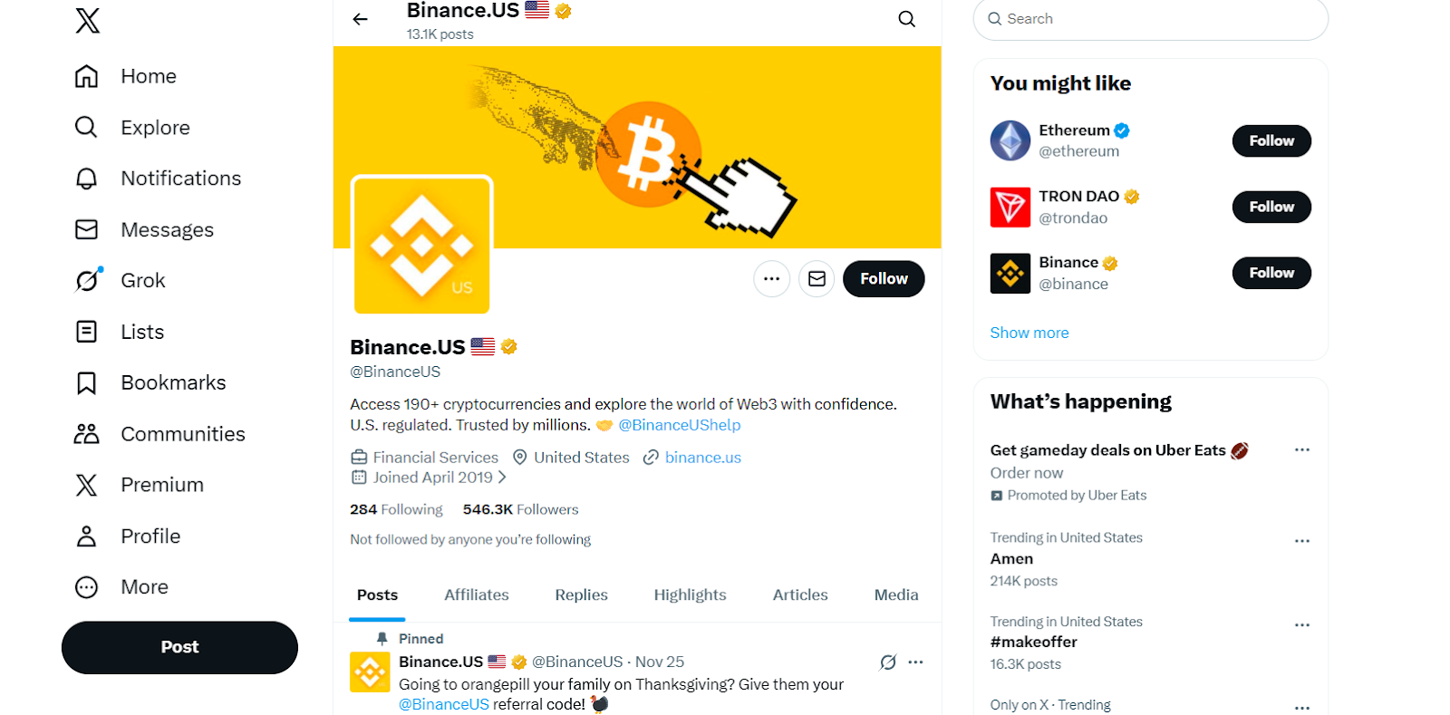 Есть аккаунт в X с более чем полумиллионом подписчиков, где биржа публикует новости листингов, акции, конкурсы и регуляторные обновления.