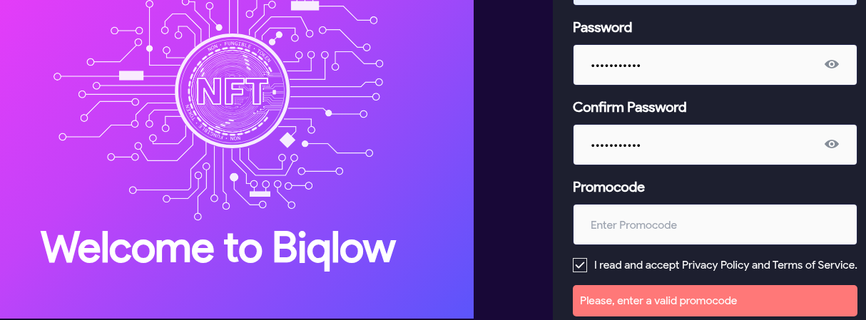 У Biqlow Com отзывы отсутствуют — проект новый. Это крипто-кошелек для хранения и управления цифровыми активами. Сервис малоизвестный, и уже на этапе регистрации возникает ряд вопросов, требующих внимания.