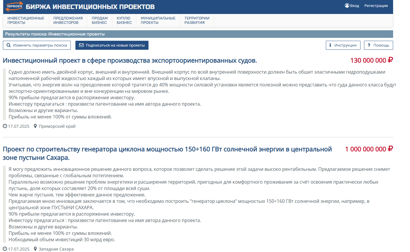 Обзор биржи инвестиционных проектов INROEX