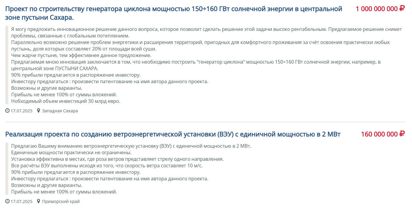 В июле 2025 года появилось 3 проекта с похожим описанием. Людям предлагают инвестировать в зеленую энергетику и производство судов. Суммарно запросили 31 миллиард евро.