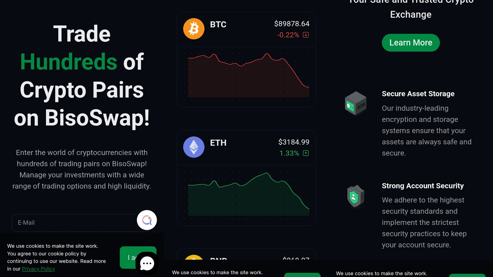 Bisoswap — это протокол обмена, который предназначен для обеспечения ликвидности в BRC-20 на основе Ordinal. Проект упрощает торговлю токенами BRC, а также помогает совершать быстрые свапы. Сейчас на домене проекта работает криптовалютная биржа, которая предлагает несколько типов торговли, стейкинг, а также криптовалютное кредитование. Далее мы расскажем, связан ли протокол с площадкой, а также безопасно ли с ним сотрудничать.