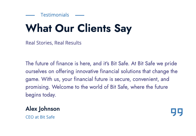 На самом сайте Bit Safe есть блок «Что говорят о нас клиенты». Можно подумать, что это отзывы. Однако, в данном блоке только одна запись, которая была сделана CEO, директором Bit Safe.