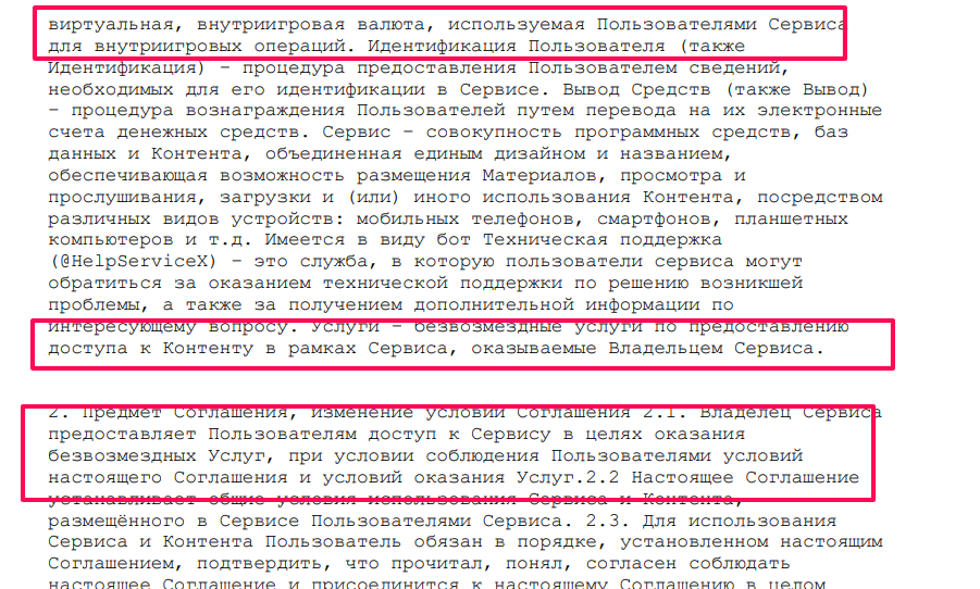 • лицензионное соглашение составлено таким образом, что контора даже не оказывает услуг клиенту, а он жертвует ей деньги по собственному желанию, без права получения собственной выгоды.