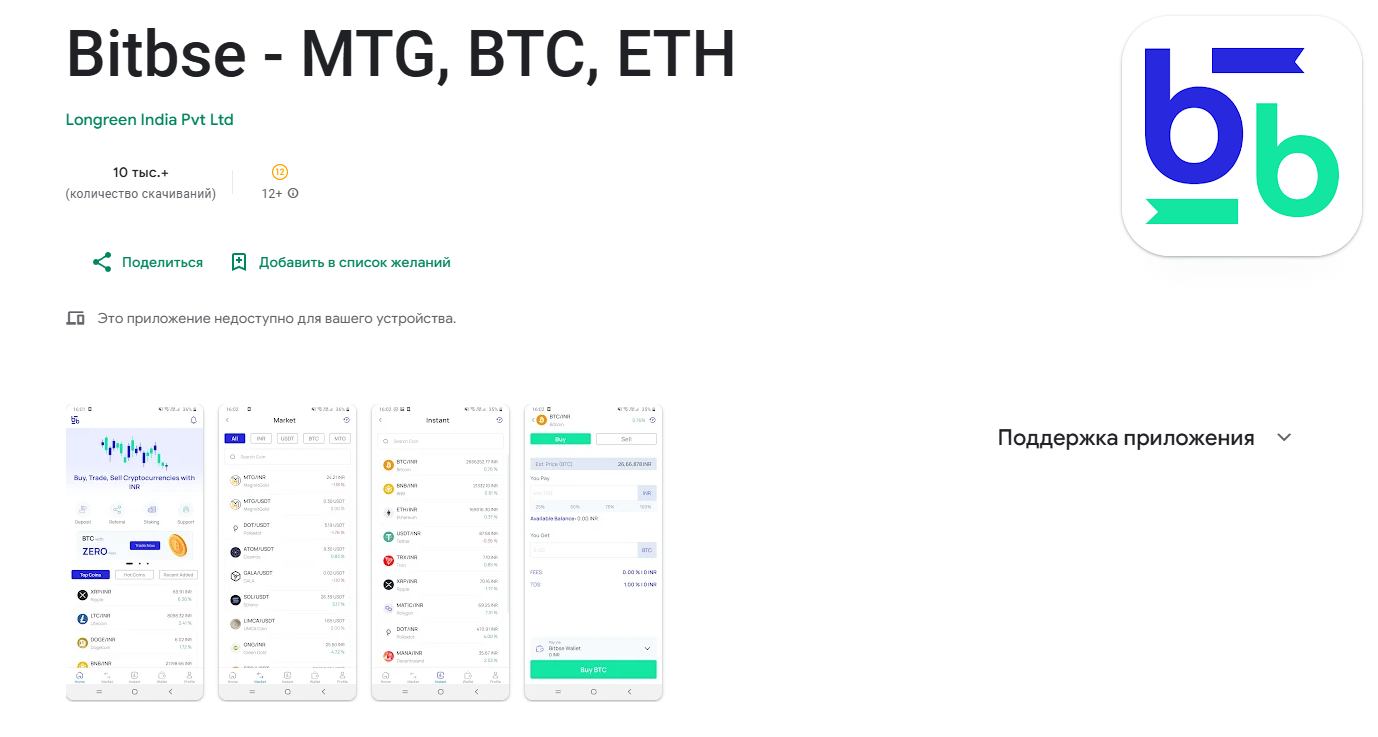 Приложение Bitbse MTG BTC ETH скачали более 10 000 раз. Для трехлетнего проекта это мало. Рейтингов и комментариев в Google Play нет. Подозрительно тихо. Международной лицензии нет. Команду не показывают. Информация об учредителях отсутствует. Наград и сертификатов тоже нет.