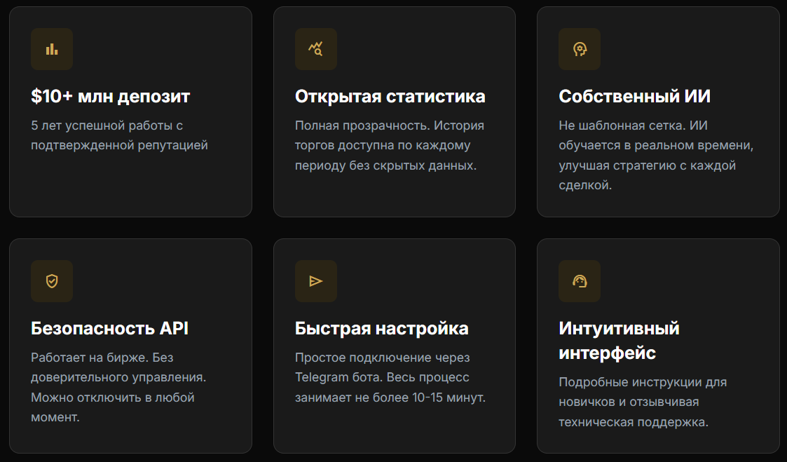 Ни одного плюса у робота нет, а вложения в подобные проекты чаще всего заканчиваются потерей всех внесенных на депозит денег.