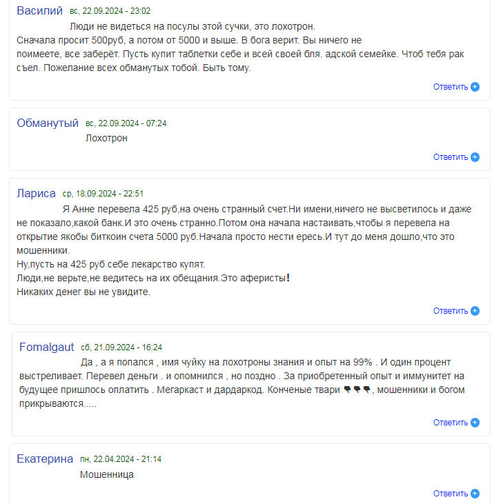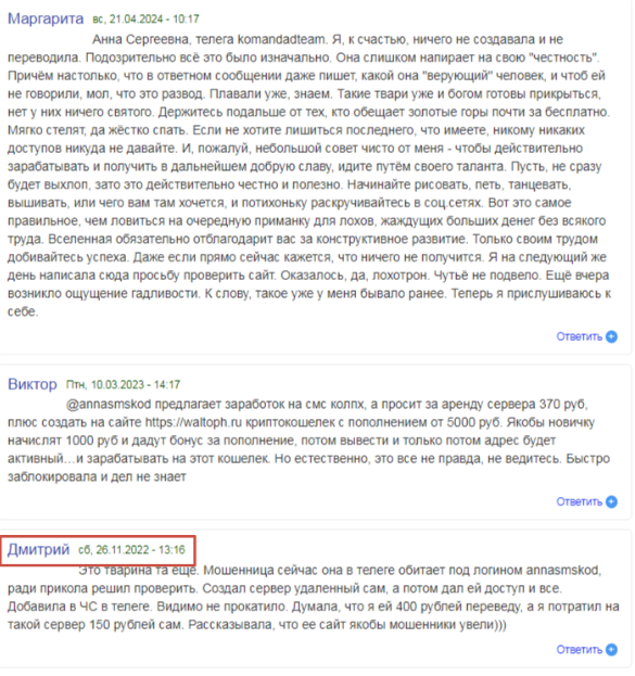 Причем о самой Анне отрицательные отзывы ходят с 2022 года.