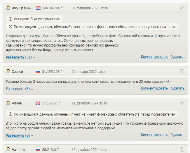 Но есть и негативные отзывы о Bitpayes org. Жалобы касаются задержек платежей и требований пройти дополнительную верификацию. Некоторые пользователи утверждают, что после предоставления документов время обработки обмена увеличивалось, а курс изменялся в худшую сторону, что приводило к финансовым потерям.