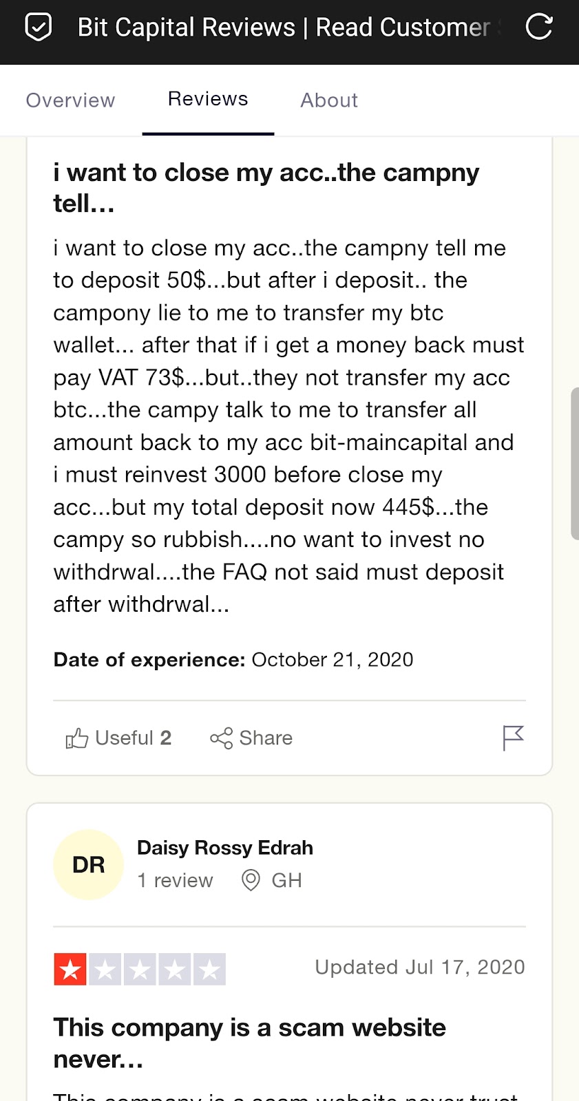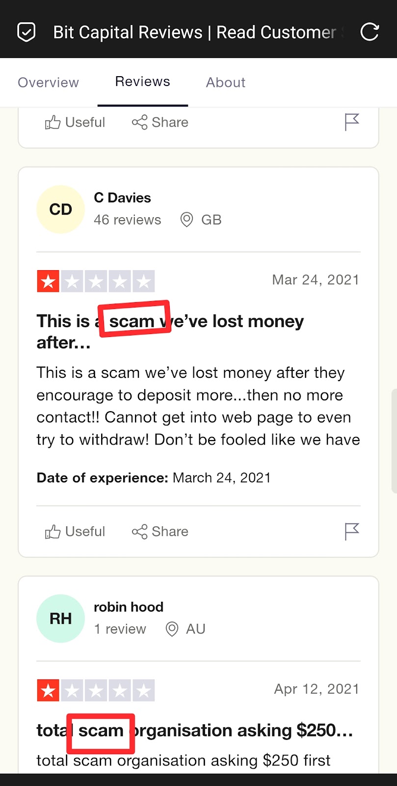 Некоторые клиенты жалуются на Support Bits Capital Com. Говорят, в поддержке тоже никто не оказывает помощи, чаще всего запросы просто игнорируют. Также пишут, что цены на площадке отличаются от реальных, а сделки проходят странно. Это может значить, что сайт обманывает клиентов. Пользователи отмечают задержки в исполнении ордеров и внезапные изменения котировок. Кто-то открыто называет проект скамом.