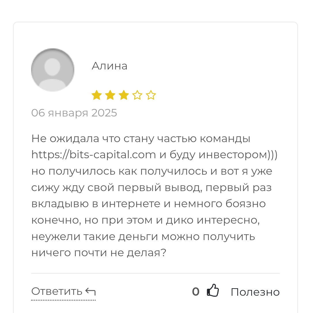 Мы не рекомендуем связываться с сайтом Bits Capital. Есть большой риск потерять свои деньги.