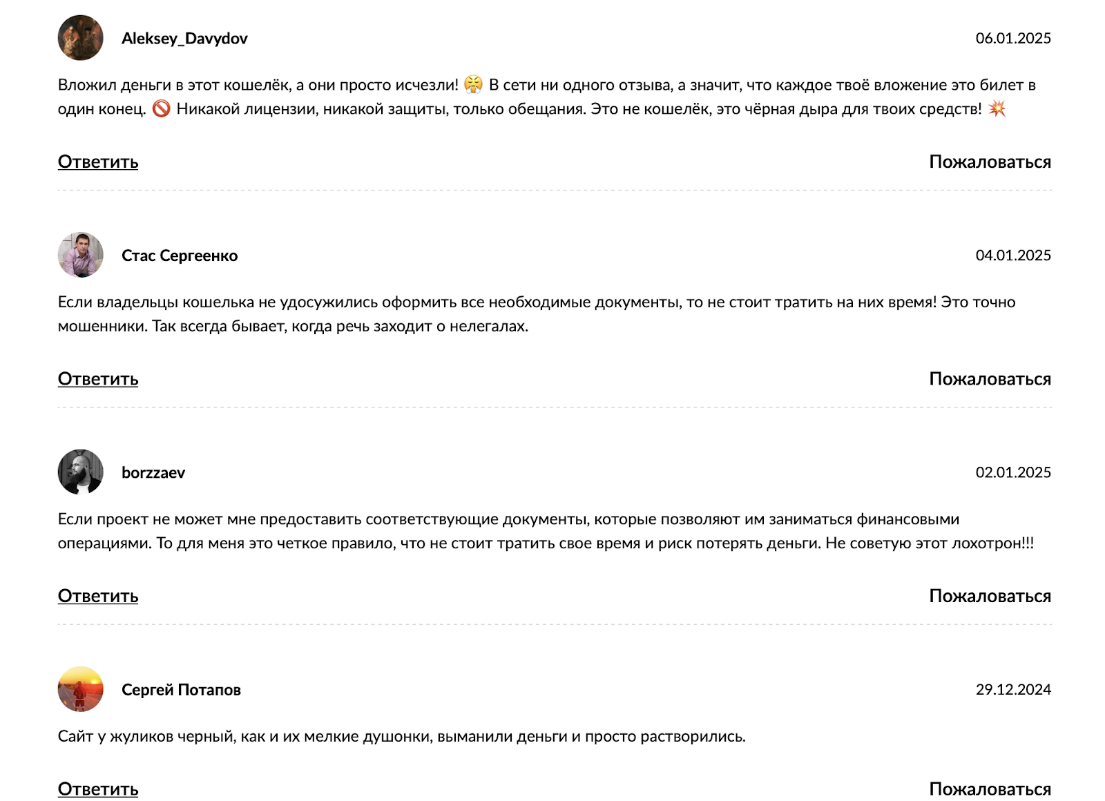 - Использование владельцем кошелька мошеннических схем. Он исчезает вместе с вложениями пользователей, оставляя тех ни с чем.