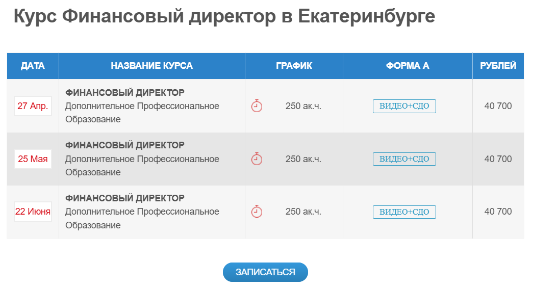 Записаться на курс можно, только оставив заявку на сайте через форму обратной связи.