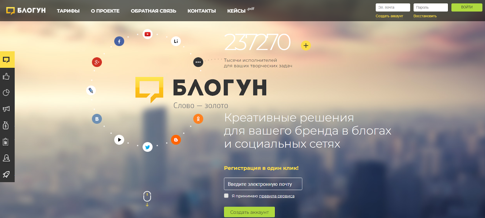 На площадке исполнители находят заказы для заработка, а блогеры удовлетворяют свои потребности в маркетинге проектов, генерации контента и других задачах СММ. За предоставления услуг посредника компания Blogun Ru берет с юзеров деньги.