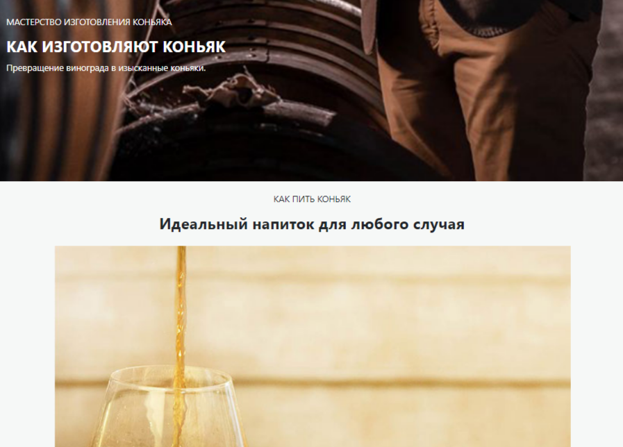 На главной странице Bnh Cognac встречает фраза «Начните дегустацию коньяков», и дальше посетителям предлагается войти в личный кабинет или пройти здесь регистрацию. На площадке нет классического дизайна веб-сайтов, так как тут расположены картинки, связанные с коньячной тематикой. Это выглядит сомнительно и непрезентабельно.