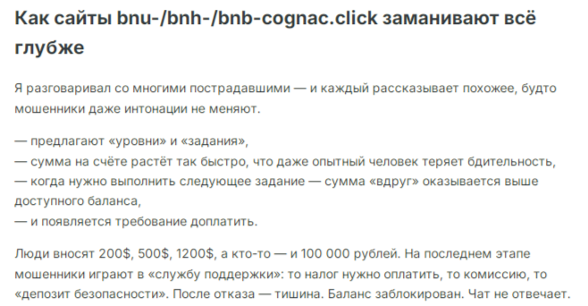 В файле, с обзором на деятельность проекта «Бнх Когнак» указывается, что ранее тут была система уровней, которая позволяла увеличивать доход. За каждую выполненную миссию приходил довольно высокий доход, и из-за этого на данную ловушку попадались даже внимательные пользователи. Какие именно тут были задания и примерный заработок – неизвестно.
