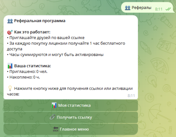 Клиентам сервиса «Б Опшнс Б» предлагается участвовать в реферальной программе. Для этого нужно приглашать друзей по специальной ссылке и за каждую купленную ими лицензию пользователю будет начисляться 1 час бесплатного доступна. Часы суммируются и могут быть активированы.