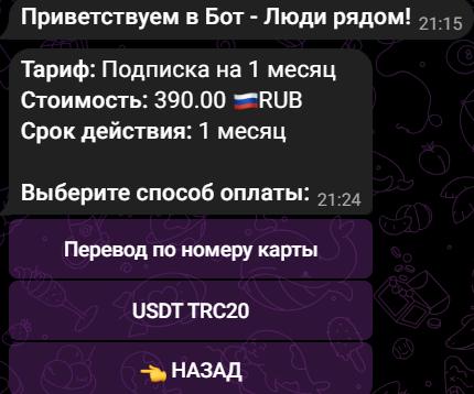 Стоимость подписки в боте Найти людей рядом зависит от периода ее действия: