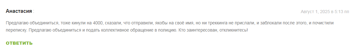 - Игнорирование жалоб: как только человек пытался вернуть деньги, продавцы исчезали и обрывали связь.