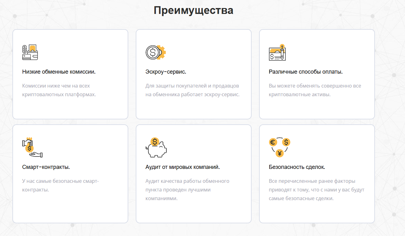 По утверждению авторов, у площадки есть многочисленные партнеры — ExChange Top, CryptoBrokers, BestChange. В сети нет информации, подтверждающей реальность этих сведений, что может настораживать клиентов.