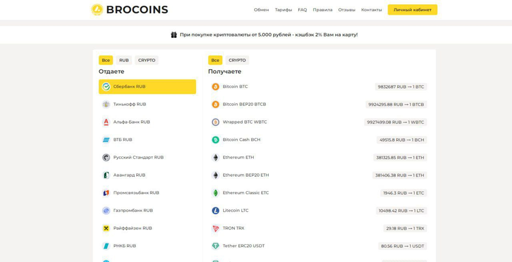 Обзор обменника Brocoins