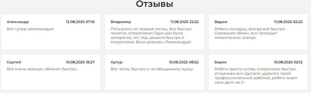 Отзывы об Brocoins в основном негативные. На сайте обменника они все пятизвездочные и вполне могут быть подкупными. Владельцам невыгодно размещать негативные комментарии от клиентов. В подконтрольных отзывах пользователи рассказывают, что работает платформа оперативно и пользуются ею уже не первый месяц.