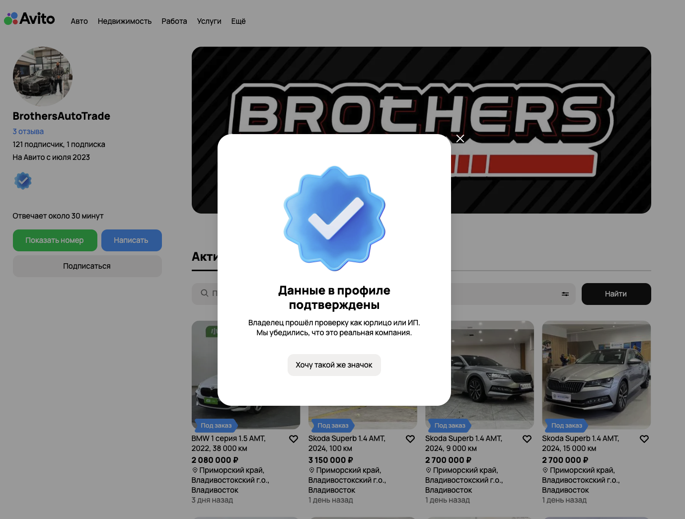 У проекта есть профиль на Авито с проверенными документами:
