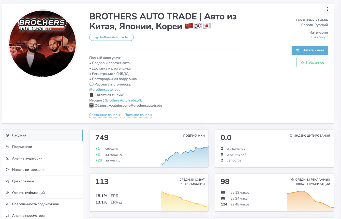 Телеграм-канал запущен в середине 2023 года. На него подписалось лишь 749 человек.