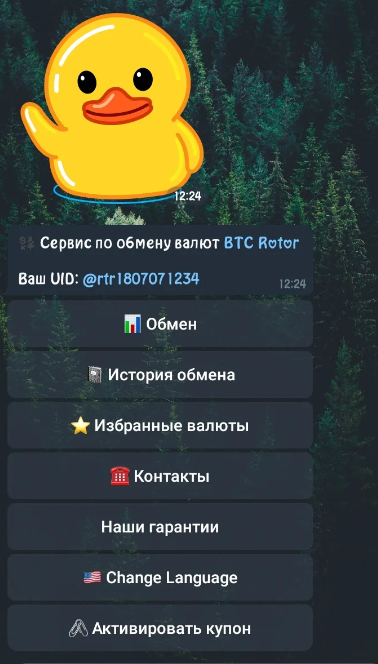 У проекта есть телеграм-бот BTCRotor exchange bot (btcrotor exchange official bot). Через него тоже можно совершать обмен активов, просматривать свою историю транзакций, активировать купон на скидку.