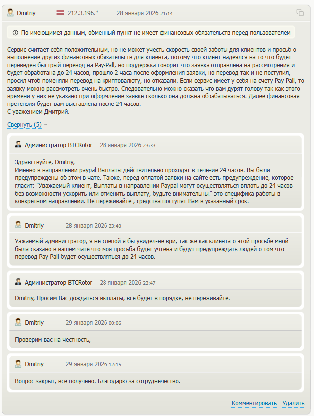Отзывы о btcrotor net в интернете положительные. Люди отмечают, что заявки на обмен обрабатываются быстро, курс выгодный, техподдержка работает отлично.