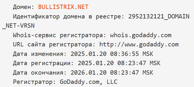 На просторах интернета компания Bullistrix появилась в январе 2025 года, то есть буквально несколько недель назад.
