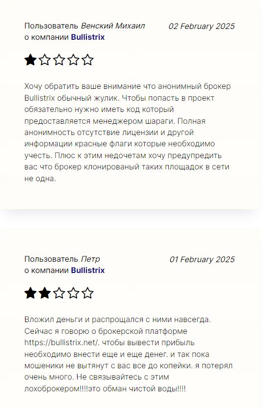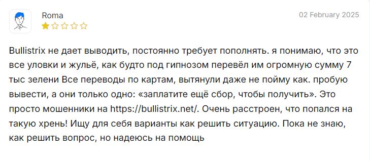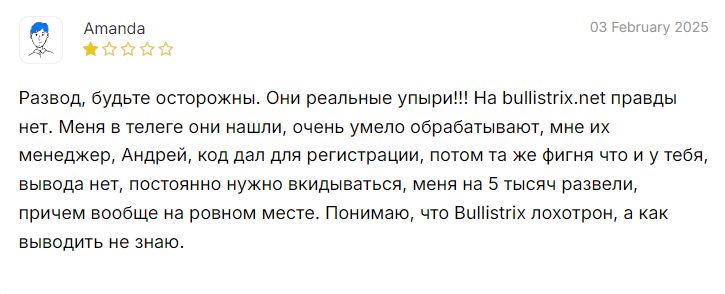 Помогите другим не попасться на удочку мошенников, оставив свой отзыв на Bullistrix.